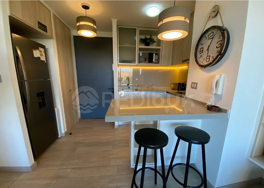*¡Oportunidad única! Vendo departamento soñado en Reñaca* Descubre este maravilloso departamento ubicado en el mejor barrio de Reñaca, con vistas panorámicas a las dunas y la costa directamente desde el dormitorio y el living. Ideal para quienes buscan comodidad y naturaleza en un solo lugar. *Características principales: * - 2 habitaciones acogedoras. - 1 baño completo. - 1 estacionamiento y 1 bodega incluidos. - Se vende completamente amoblado: incluye refrigerador, cocina encimera, campana extractora, camas, muebles para el living y más. El condominio ofrece una piscina para disfrutar del verano y conserjería 24/7 para tu tranquilidad total. ¡Un hogar listo para mudarte!